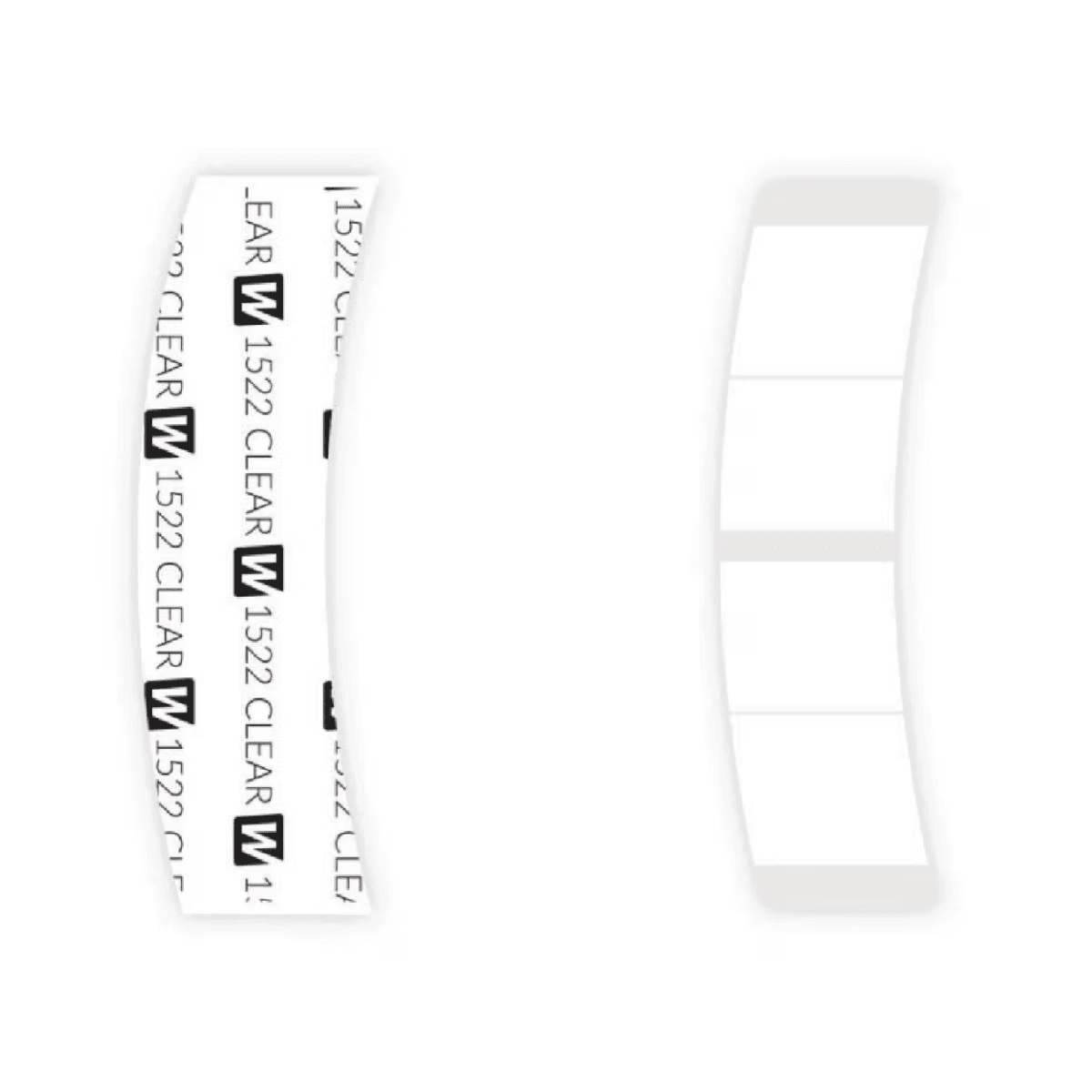 - Liner: Printed white (tape is clear)